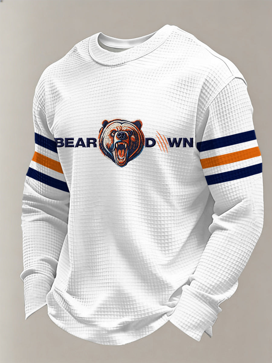 Men's Bear Down Football Fans Gameday Casual Waffle Long Sleeve T-Shirt
