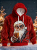 Men's Christmas Drink Up Santa Claus Print Casual Flannel Hoodie