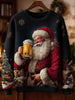 Men's Christmas Santa Claus Beer Oil Painting Print Casual Sweatshirt