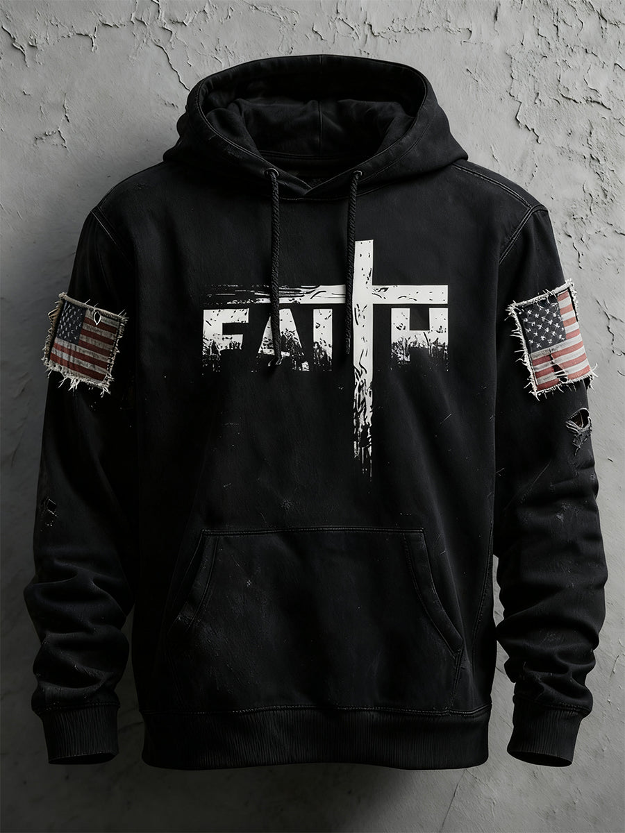 Men's Faith Cross Printed Long Sleeve Hooded Sweatshirt