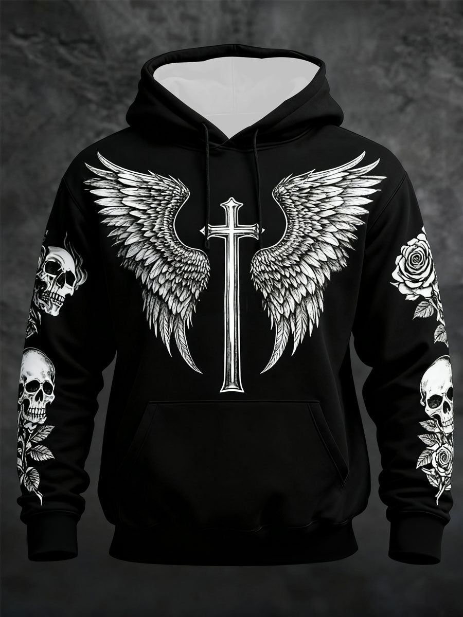 Men's Gothic Skull Oversized Drop-Shoulder Hoodie with Pockets