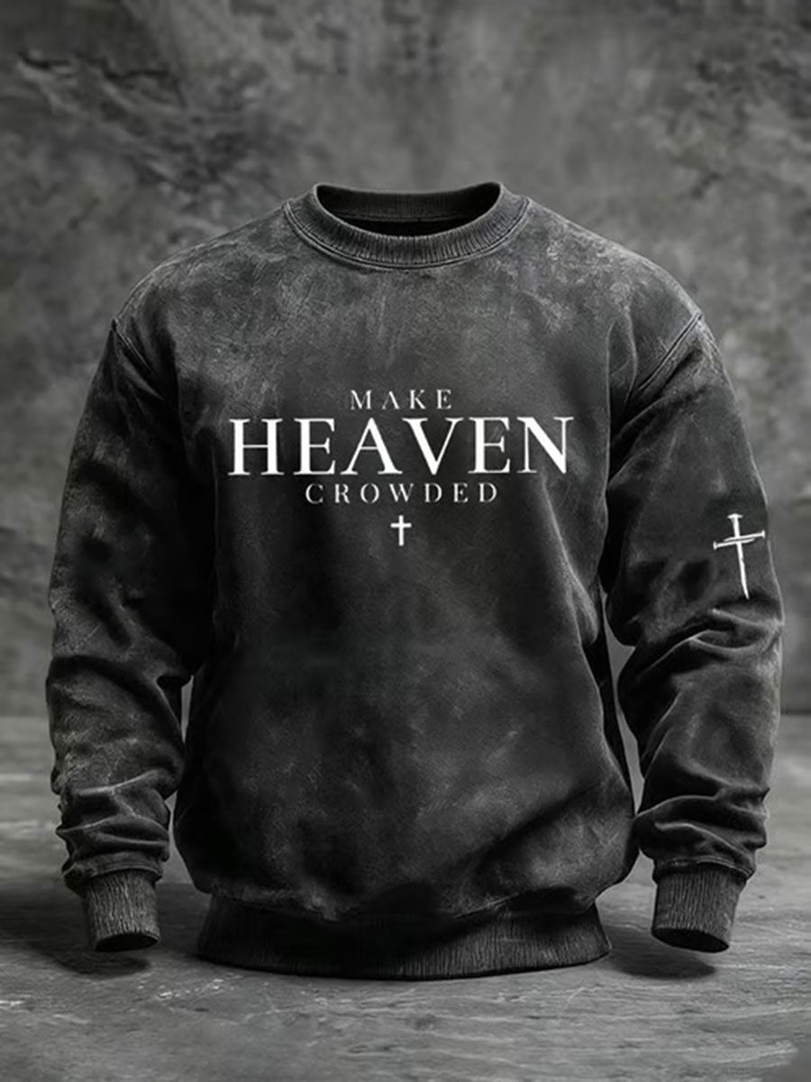 Men's "Make Heaven Crowded" print casual sweatshirt