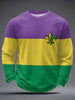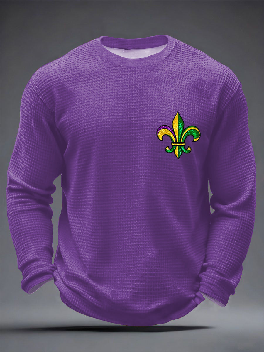 Men's Mardi Gras Fleur De Lis Colorblock Print Casual Waffle Long Sleeve T-Shirt
