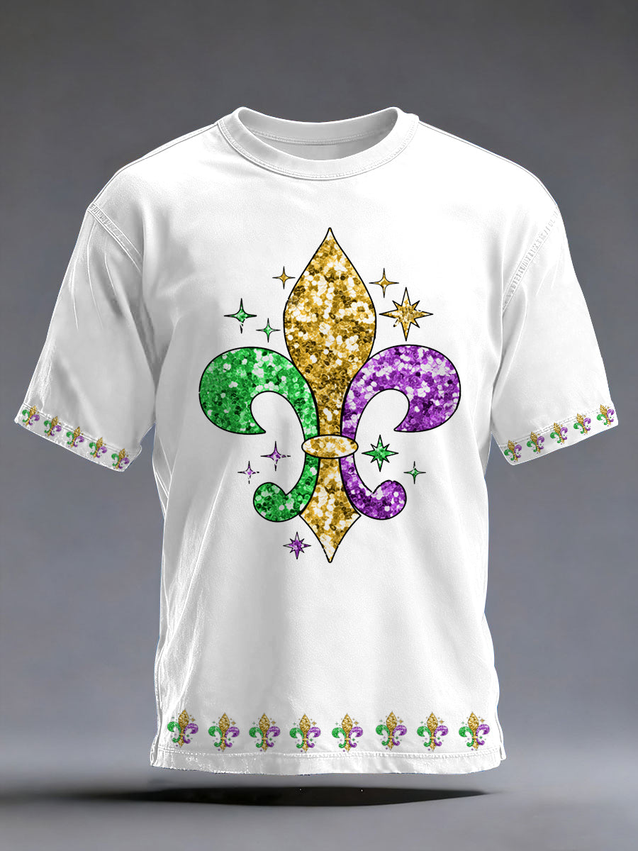 Men's Mardi Gras Fleur De Lis Print Casual Tee