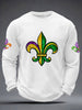 Men's Mardi Gras Fleur De Lis Print Casual Waffle Long Sleeve T-Shirt