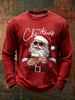 Men's Merry Christmas Santa Claus Print Casual Waffle Long Sleeve Top