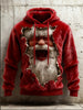 Men's Santa Claus Print Casual Flannel Hoodie Sweatshirt
