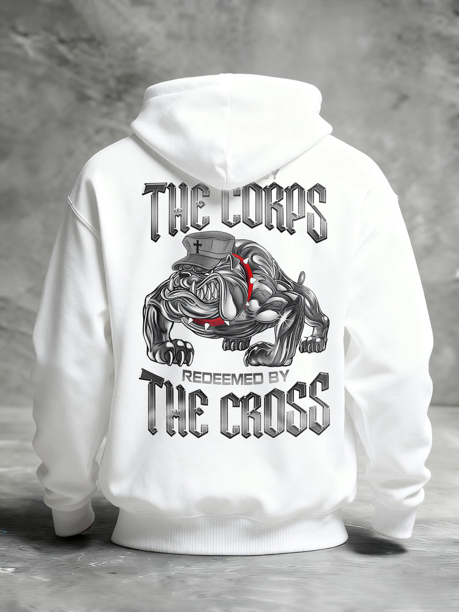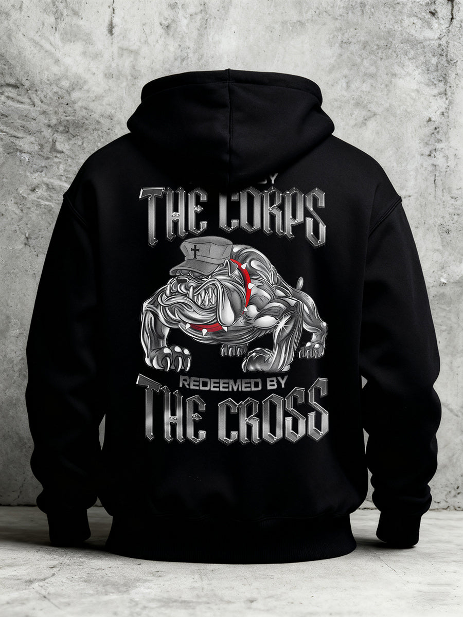 Men's Trained By The Corps Redeemed By The Cross Printed Casual Hoodie
