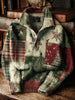 Men's Vintage Christmas Patchwork Art Print Button Stand Collar Hoodie