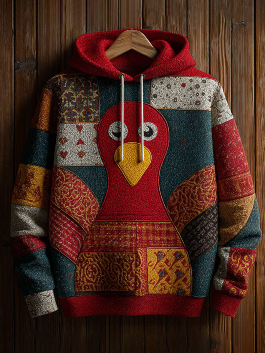 Vintage Thanksgiving Turkey Patchwork Print Art Casual Hoodie