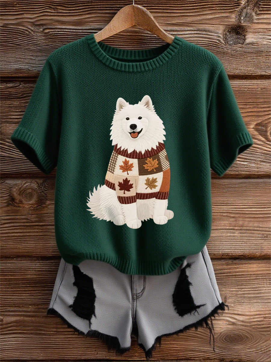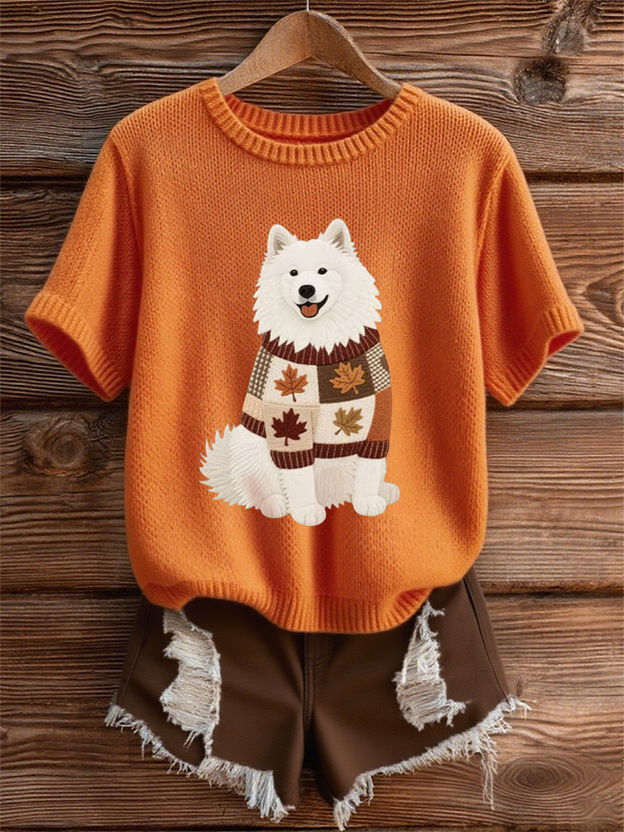 Women's Autumn Dog Art Print Short SleeveT-shirt