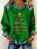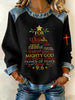Women's Christian Christmas Faith Cross Print Denim Patchwork Top