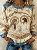 Women's Christian Nativity Scene Denim Patchwork Top