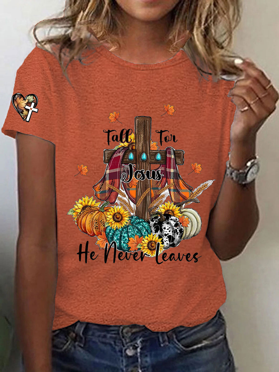 Women's Fall For Jesus, He Never Leaves Cross Short Sleeve T-Shirt