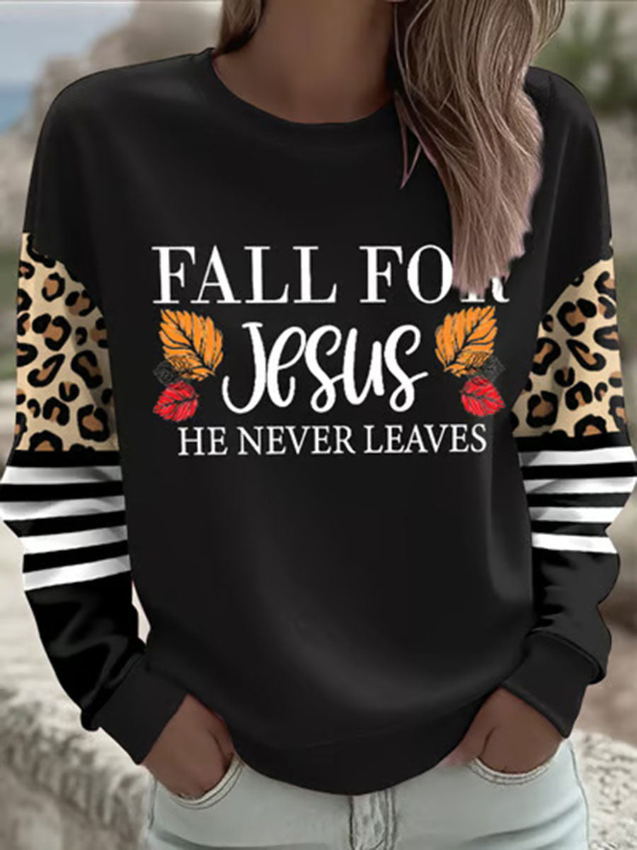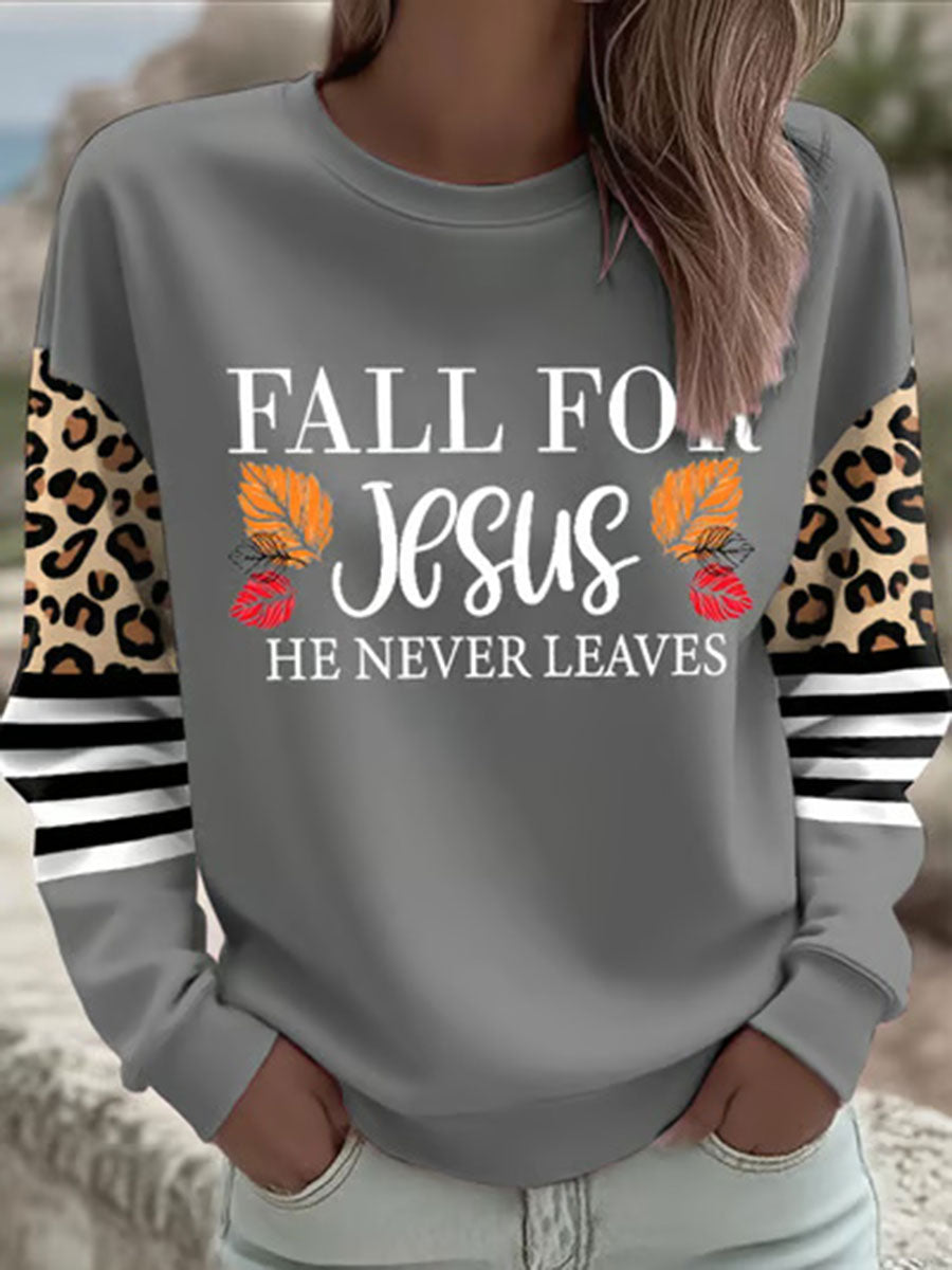Women's Fall For Jesus He Never Leaves Printed Casual Sweatshirt