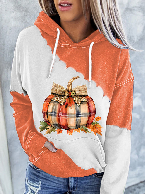 Women's Fall Plaid Pumpkin Print Casual Hoodie