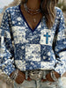 Women's Flower Patchwork Cross V-Neck T-Shirt
