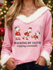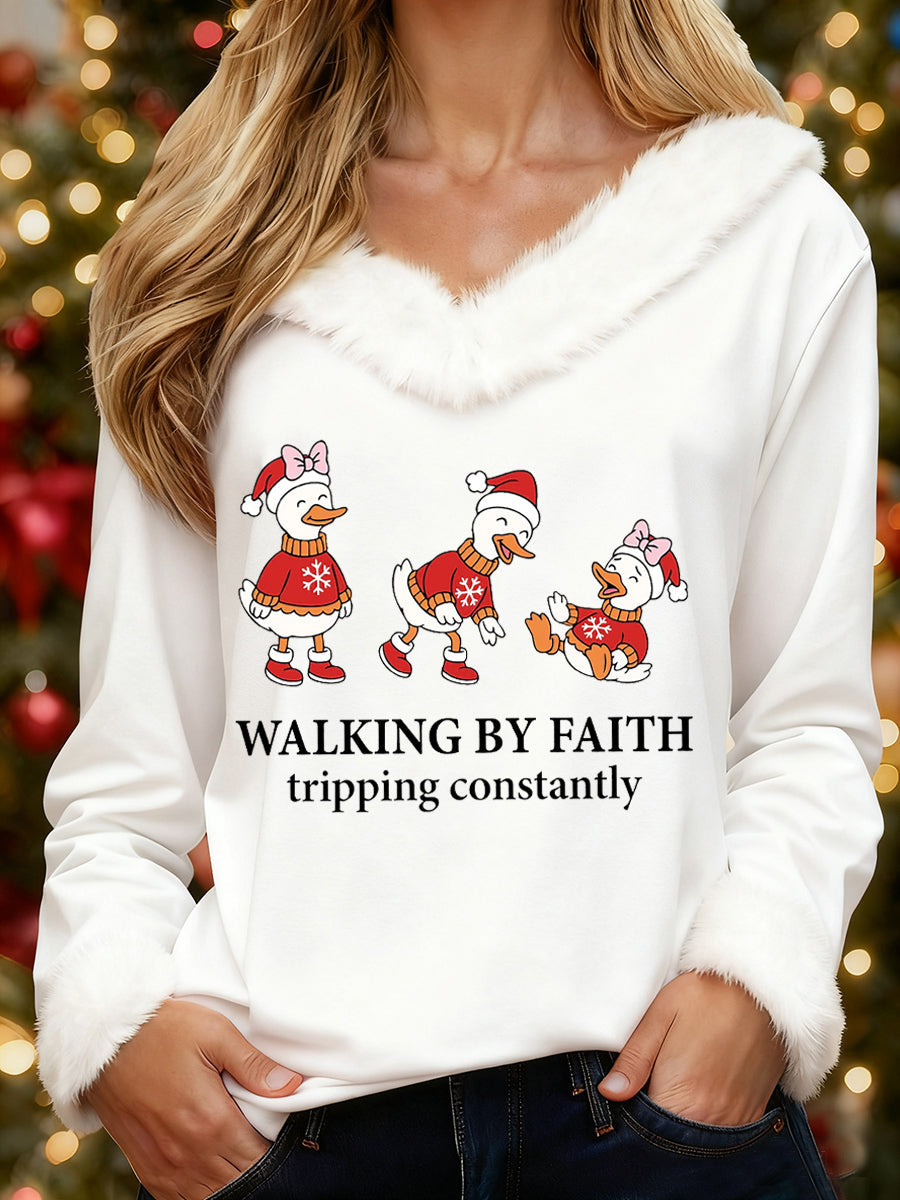 Women's Funny Christmas Goose Walking By Faith Tripping Constantly Print Casual Fur-Collar Top