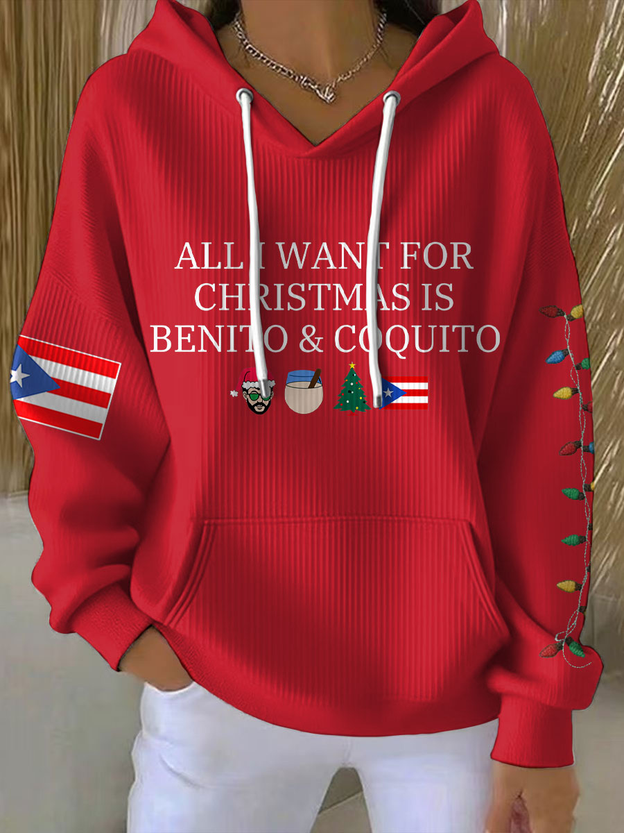Women's Funny Puerto Rico Christmas Printed Hoodie