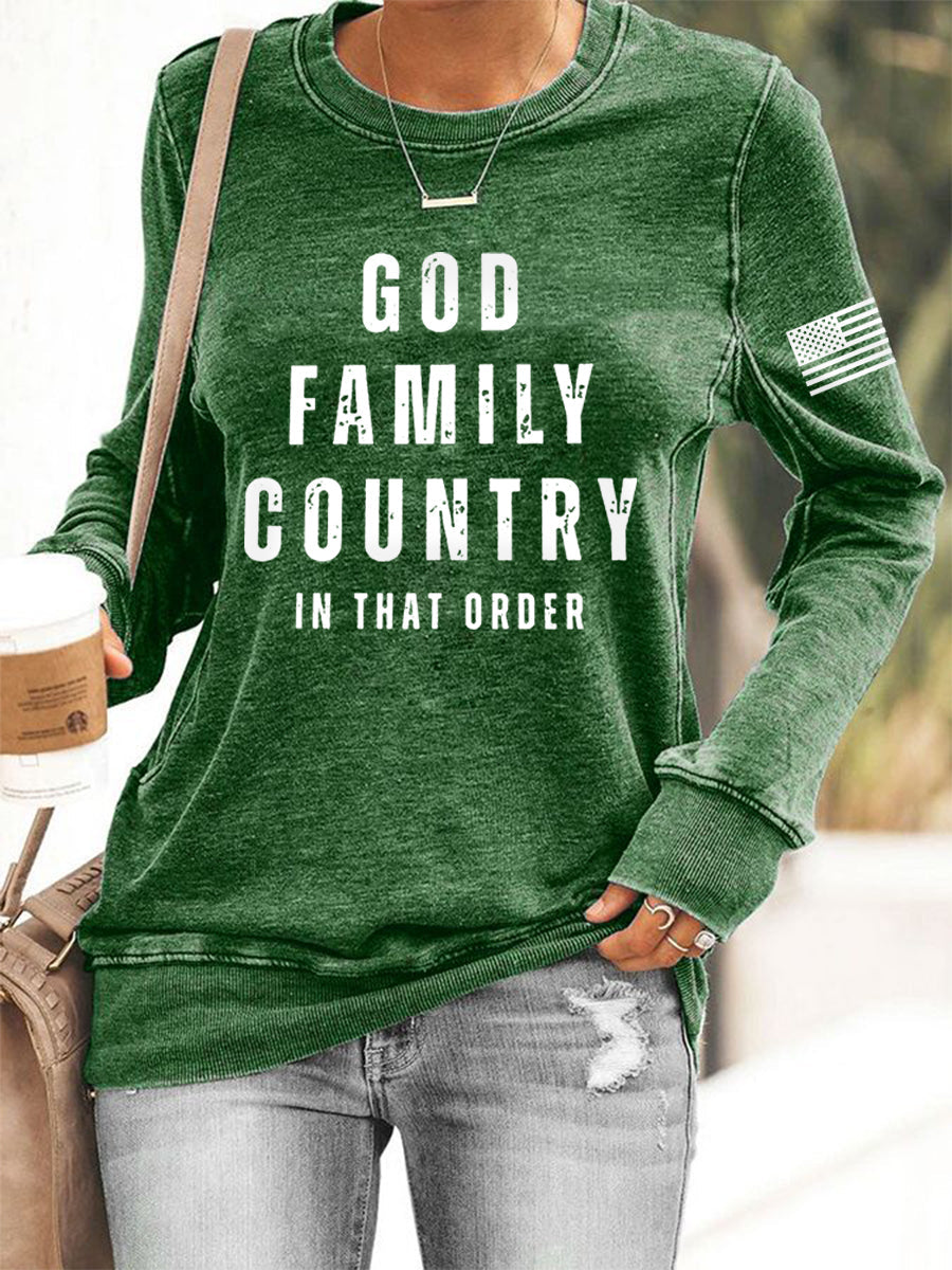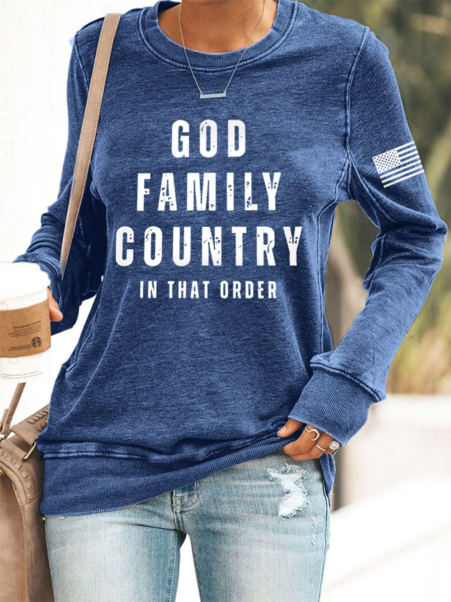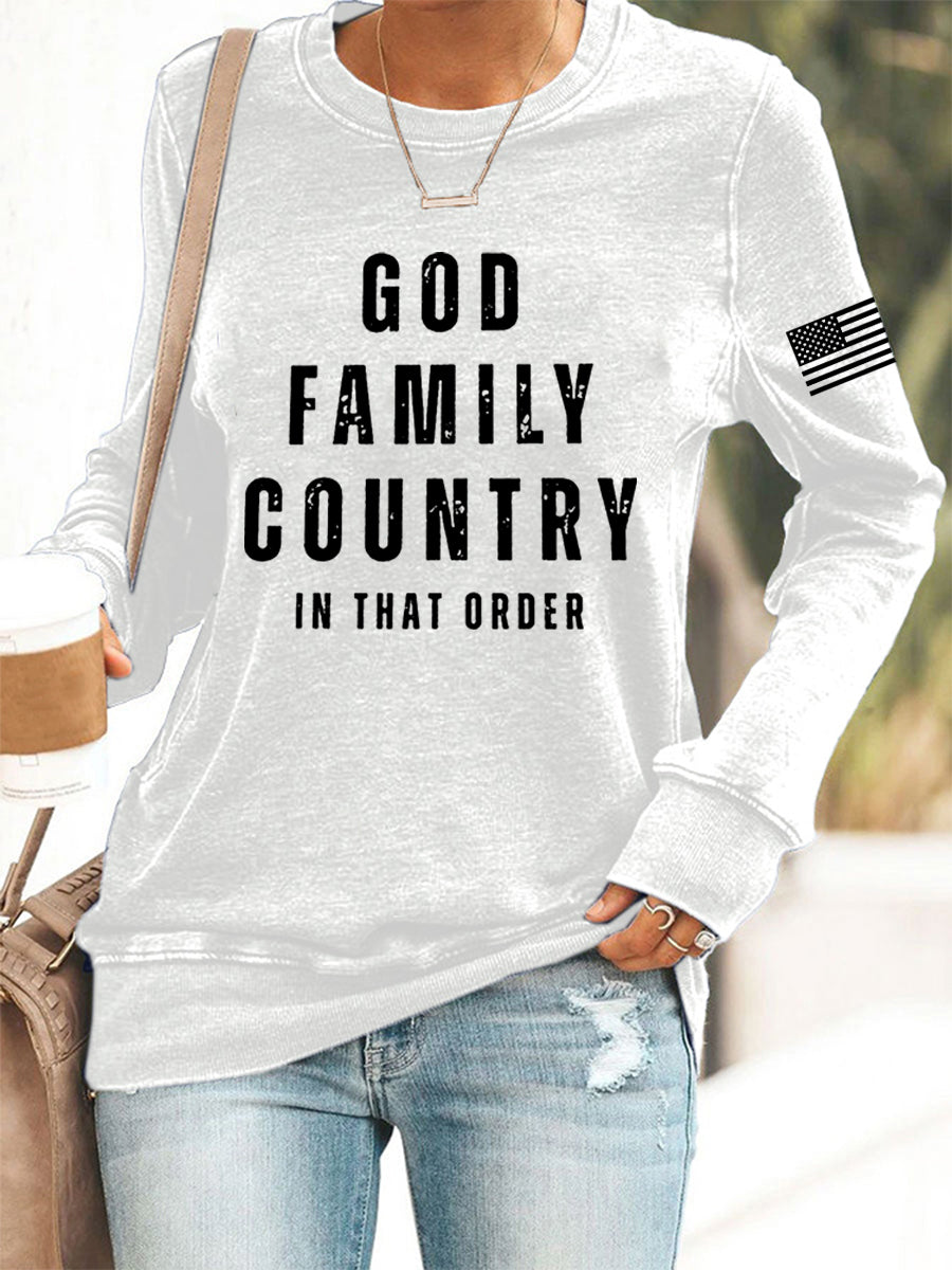 Women's God Family Country In That Order USA Flag Print Sweatshirt