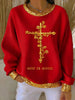 Women's God Is Good Faith Cross Art Ribbed Round-Neck Sweatshirt