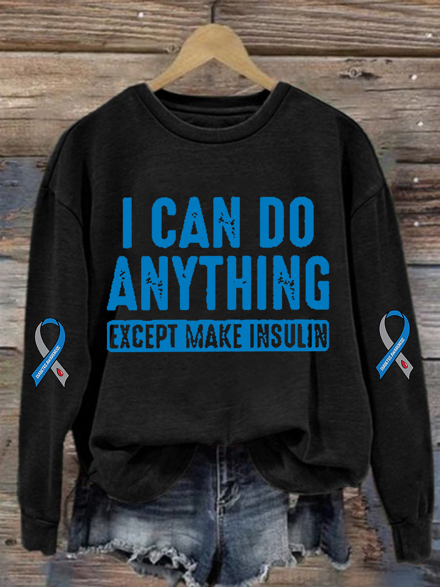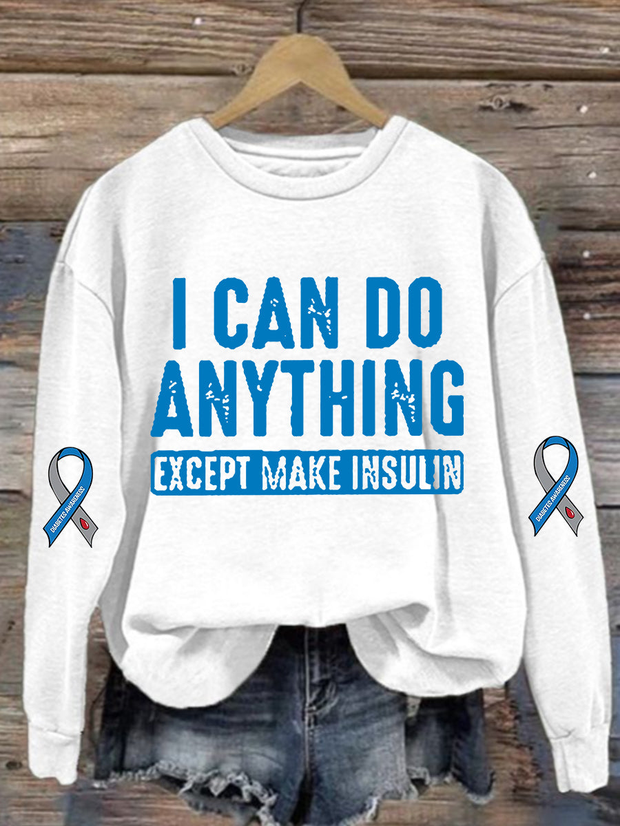 Women's I Can Do Anything Except Make Insulin Diabetes Awareness Print Hoodie Long Sleeve Sweatshirt