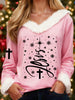 Women's Jesus Christmas Tree Cross Print Casual Fur-Collar Top
