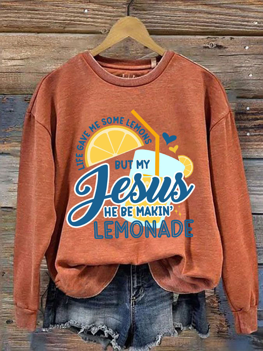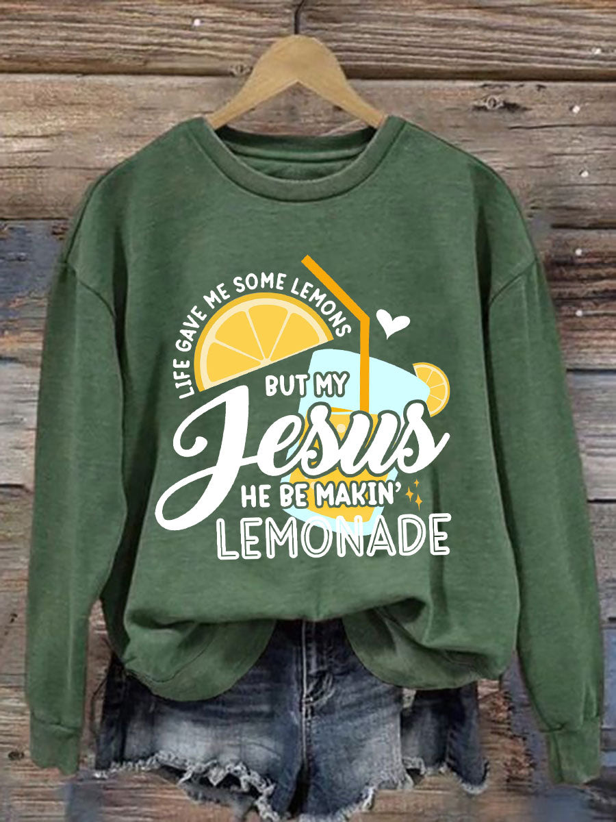 Women's Jesus Lemonade Print Casual Sweatshirt