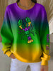 Women's Mardi Gras Crawfish Print Ribbed Round-Neck Sweatshirt