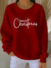 Women's Merry Christmas Cross Print Ribbed Round-Neck Sweatshirt