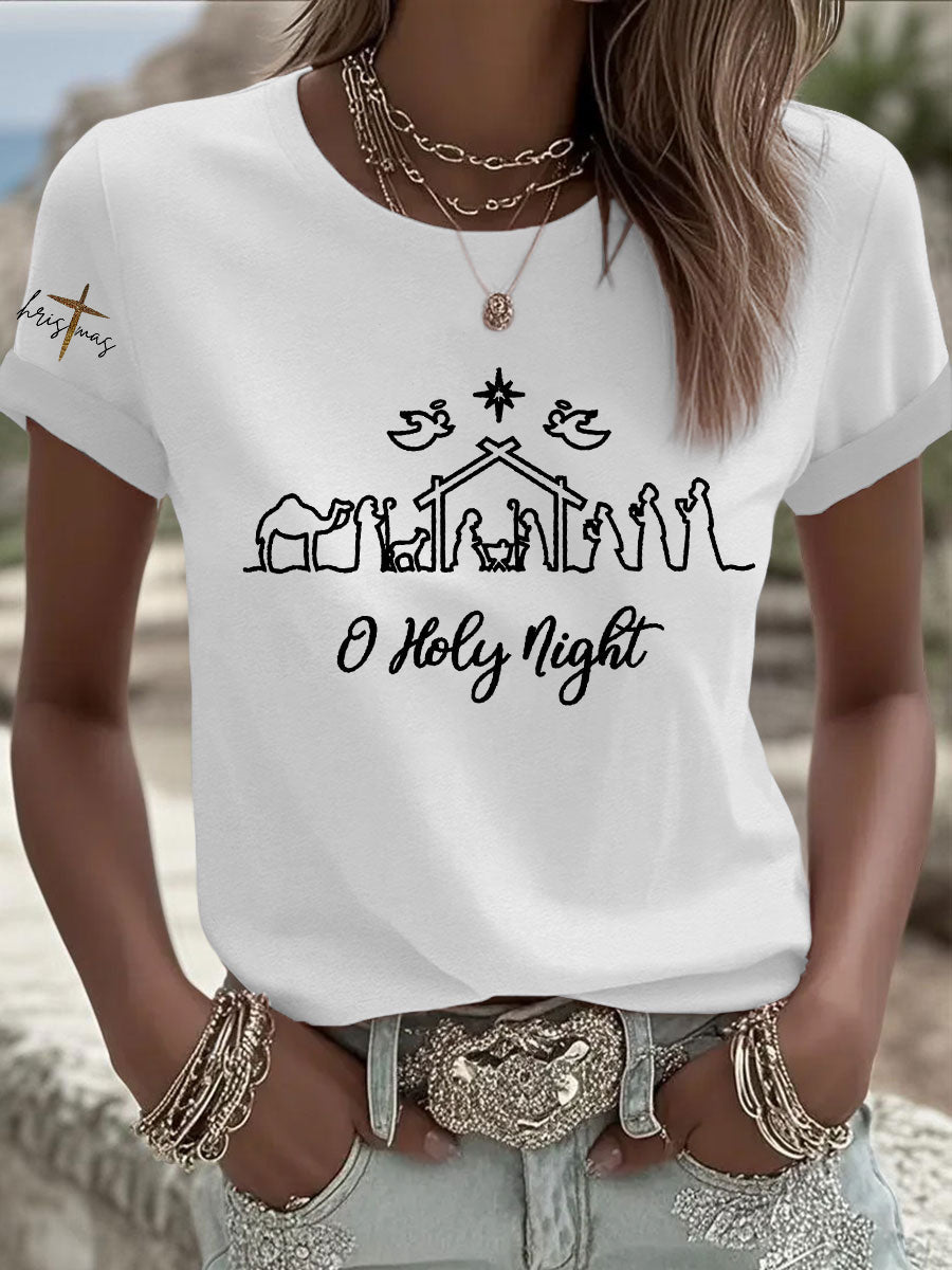 Women's “O Holy Night” Print Short Sleeve T-Shirt