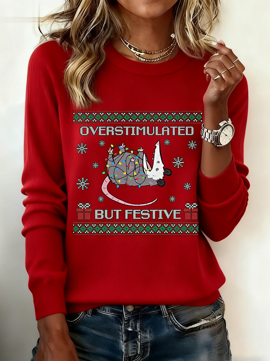 Women's Overstimulated But Festive Possum Christmas Sweater