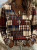 Women's Plaid Patchwork Cross V-Neck T-Shirt