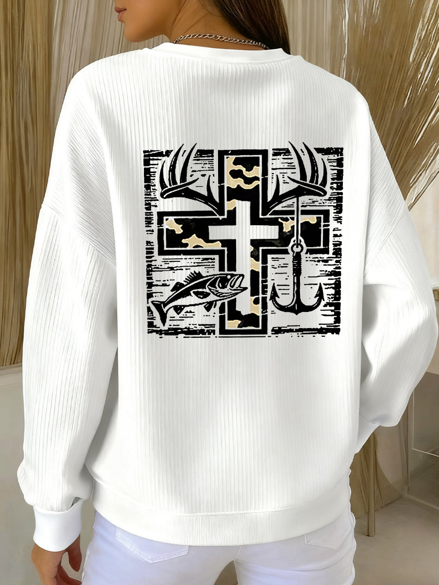 Women's Retro Faith Fishing Hunting Print Casual Sweatshirt