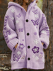 Women's Retro Purple Printed Composite Fleece Long Coat