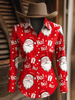 Women's Santa Print Christmas Western Long Sleeve Shirt