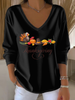 Women's Thanks giving day turkey Printed V-Neck T-Shirt
