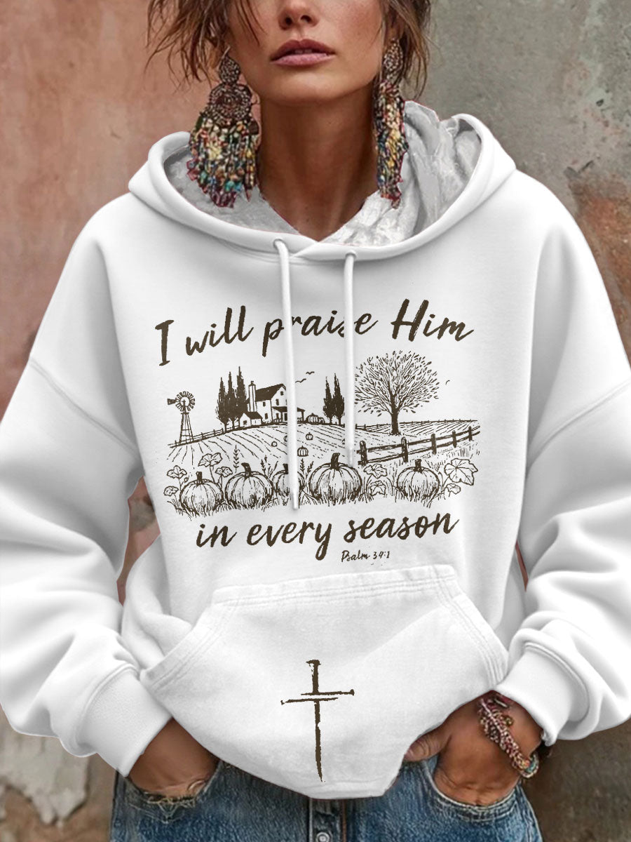 Women's Thanksgiving Autumn Pumpkin Faith Printed Hoodie
