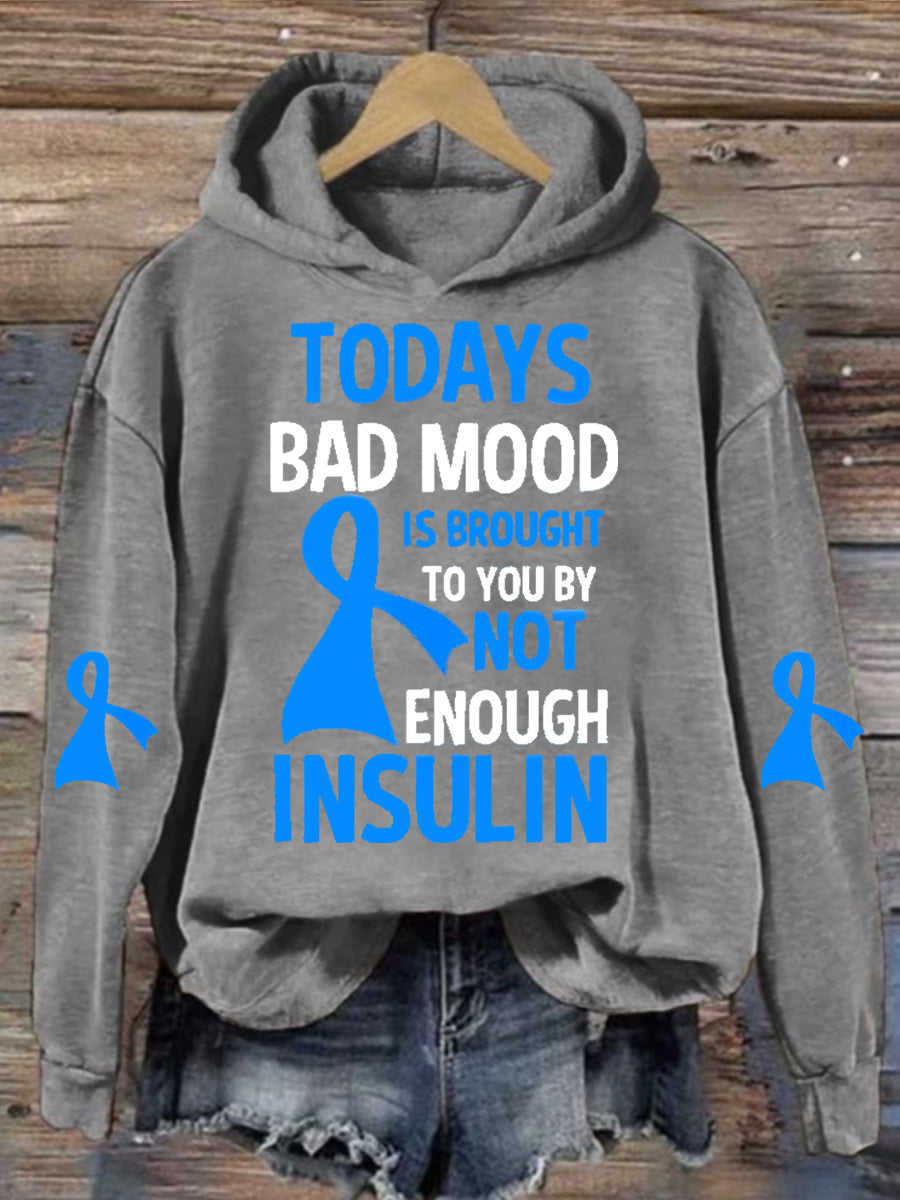 Women's TODAYS BAD MOOD IS BROUGHT TO YOU BY NOT ENOUGH INSULIN Printed Long Sleeve Sweatshirt
