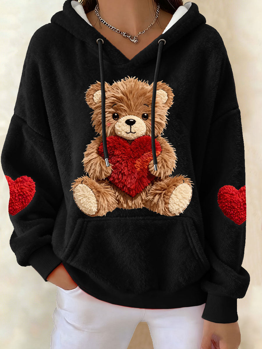 Women's Valentine's Day Teddy Bear Fleece Hoodies