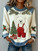 Women's Vintage Christmas Bear Tree Denim Patchwork Sweatshirt