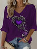 Women's Vintage Purple Floral Art Print Waffle T-shirt