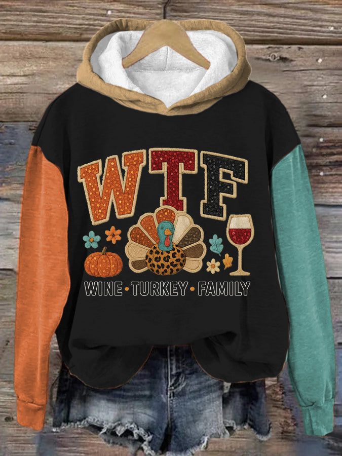 Women's WTF Wine Turkey Family Funny Thanksgiving Hoodie